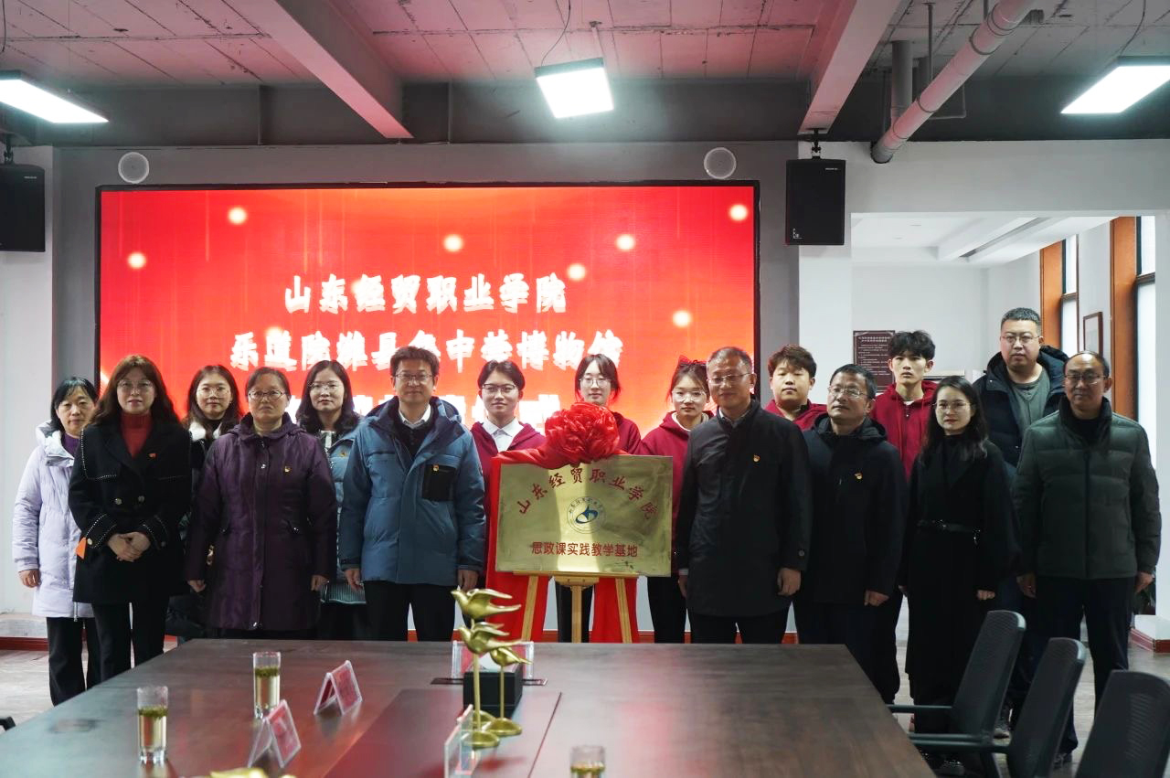 2024年1月1日,《中华人民共和国爱国主义教育法》正式颁布实施,为深入贯彻落实习近平总书记关于“大思政课”的重要指示批示精神,增强爱国主义教育的针对性、系统性、亲和力、感染力,2023年12月29日下午,学院与乐道院潍县集中营博物馆联合举行“山东经贸职业学院思政课实践教学基地”签约揭牌仪式。乐道院潍县集中营博物馆馆长刘允泉、副馆长李师庆,学院党委委员、副院长张强,科学与人文系副主任邱月玲,潍坊市思政名师工作室主持人阎宏以及乐博部分干部职工、我院思政课教师代表、思政学生社团学生代表参加了本次活动。