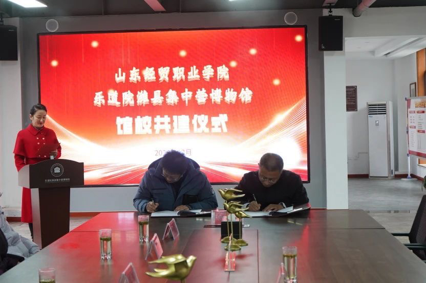 随后,双方共同签署了共建协议书,顺利完成“山东经贸职业学院思政课实践教学基地”揭牌仪式。