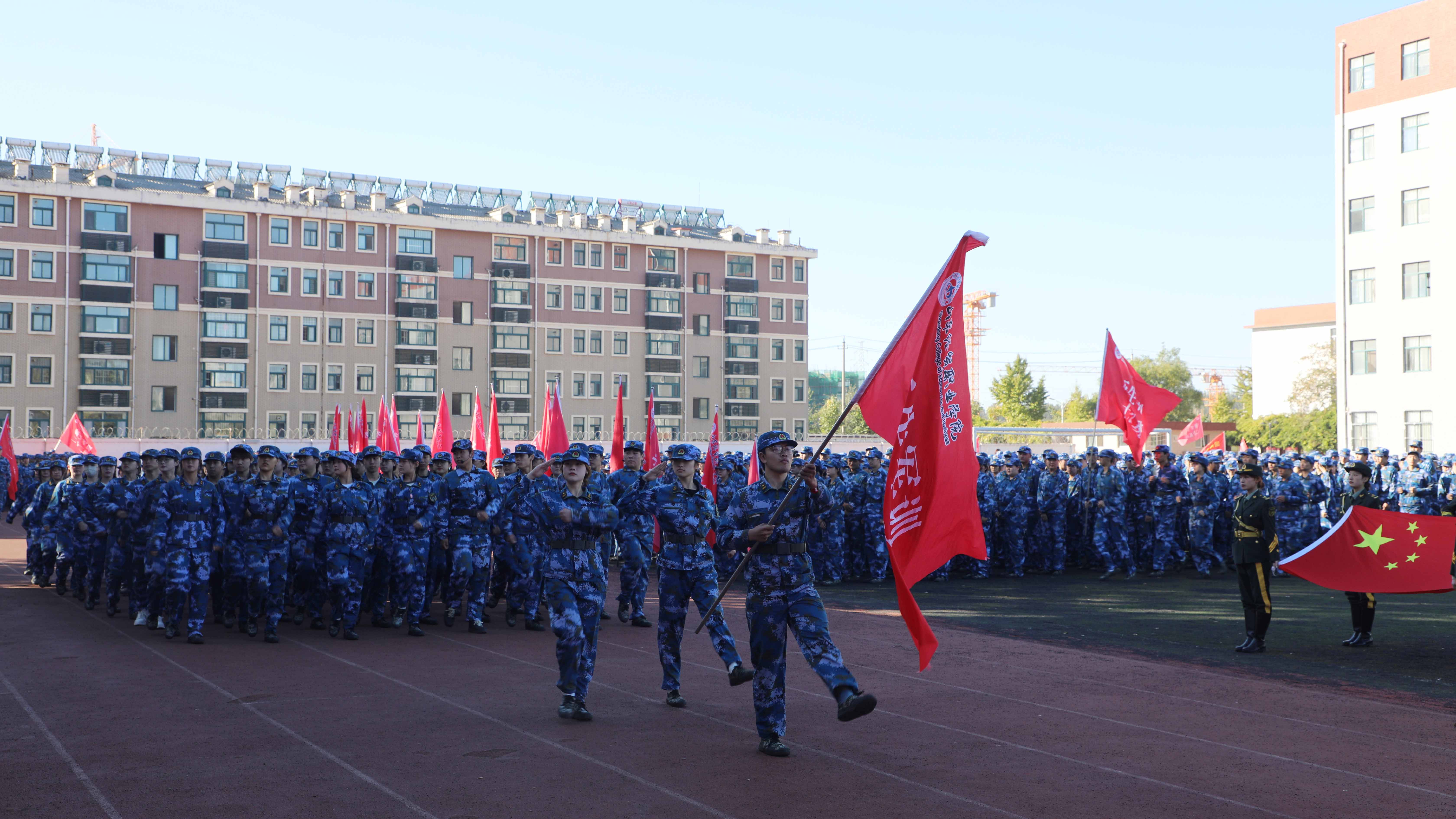 10月27日,学院在操场举行2023级新生军训总结表彰大会。学院党委副书记、院长陈卫国,中国人民解放军94303部队政治工作主任丁志龙,中国人民解放军94303部队上尉助理员狄玉良,学院党委副书记王炳华,副院长马起朋、纪委书记刘莹出席大会。大会由学生工作处副处长王磊主持。
