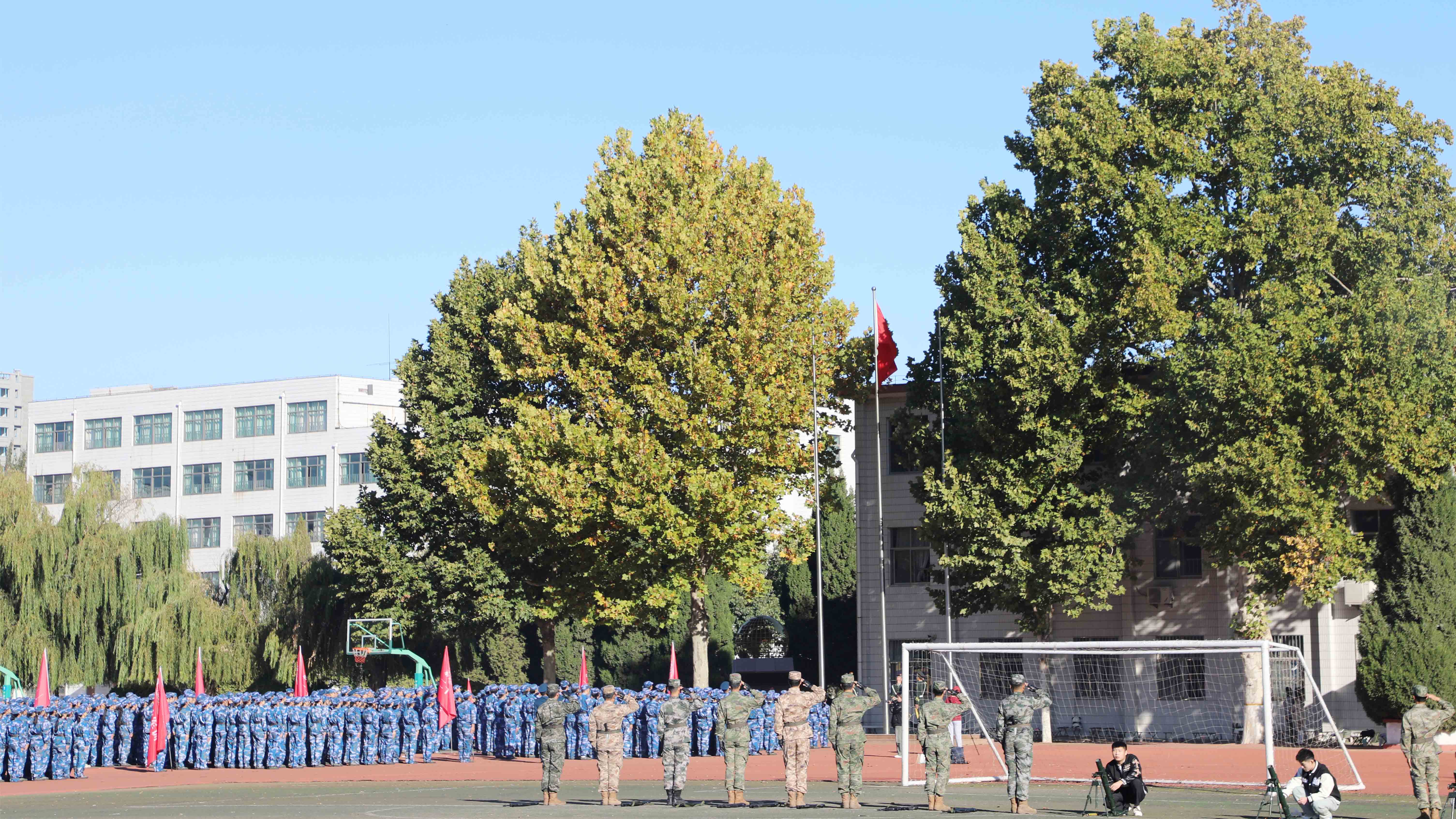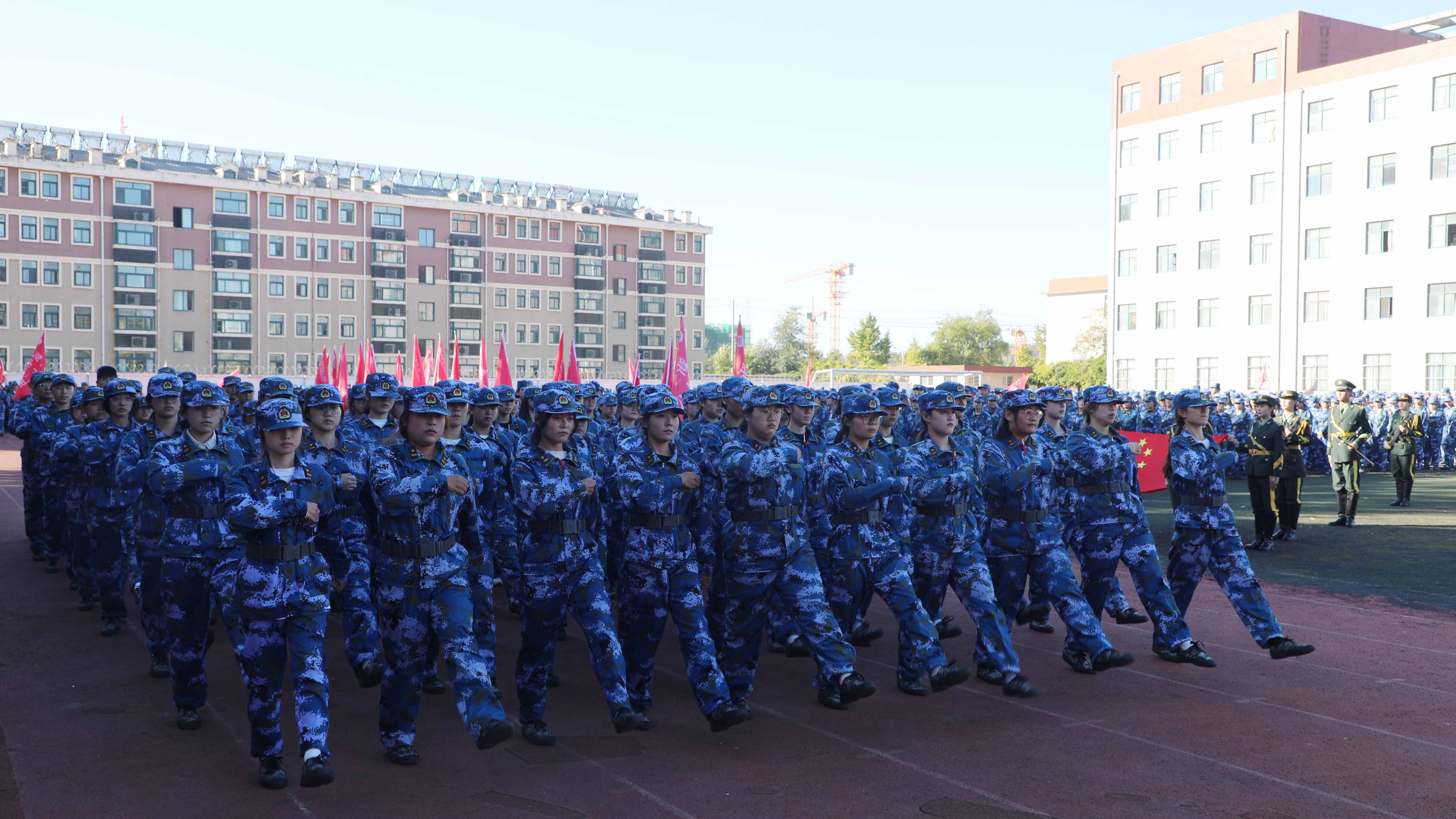 大会最后,同学们挥舞着五星红旗,全体高唱《歌唱祖国》,至此,为期三周的军训圆满结束。
