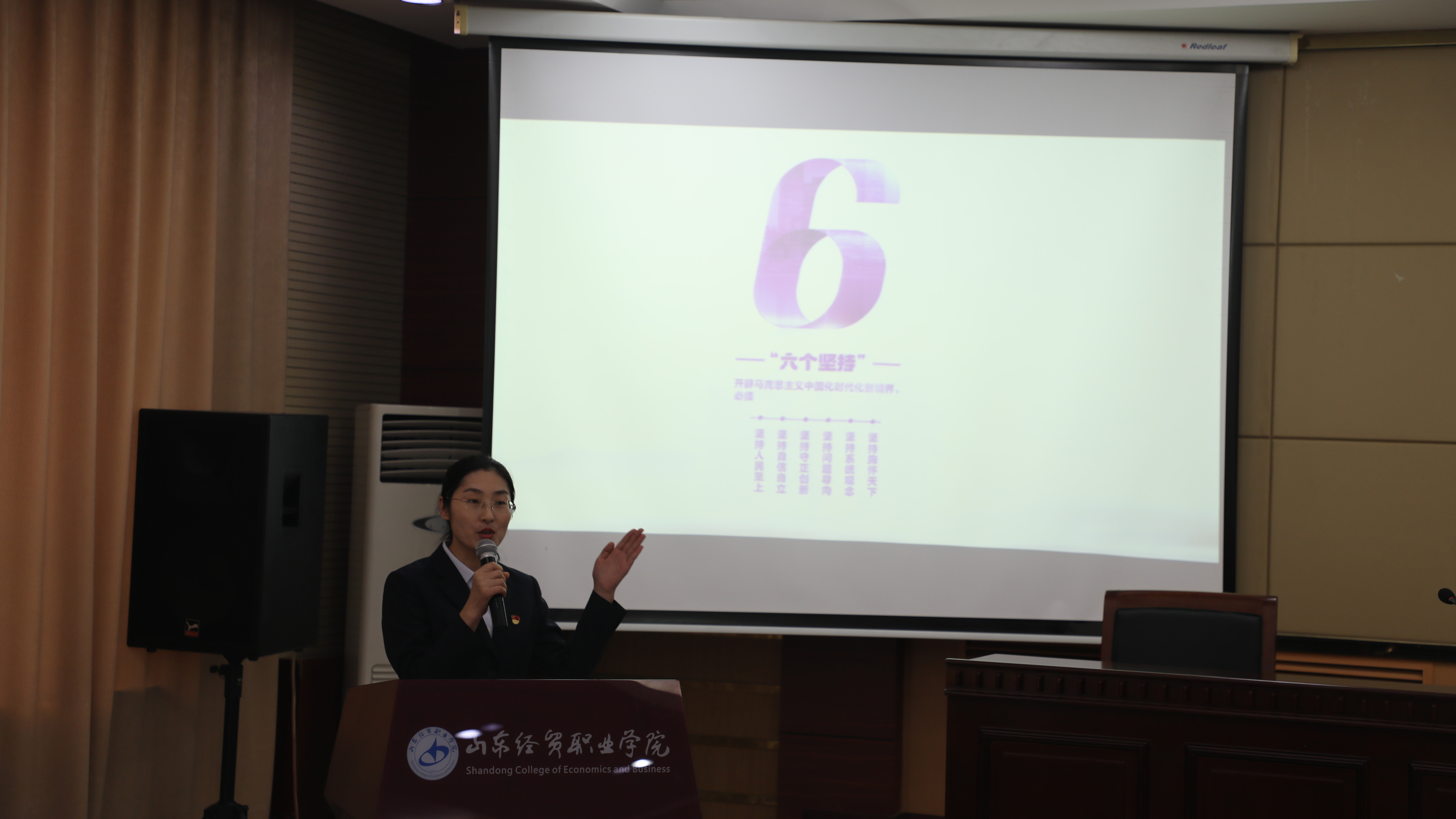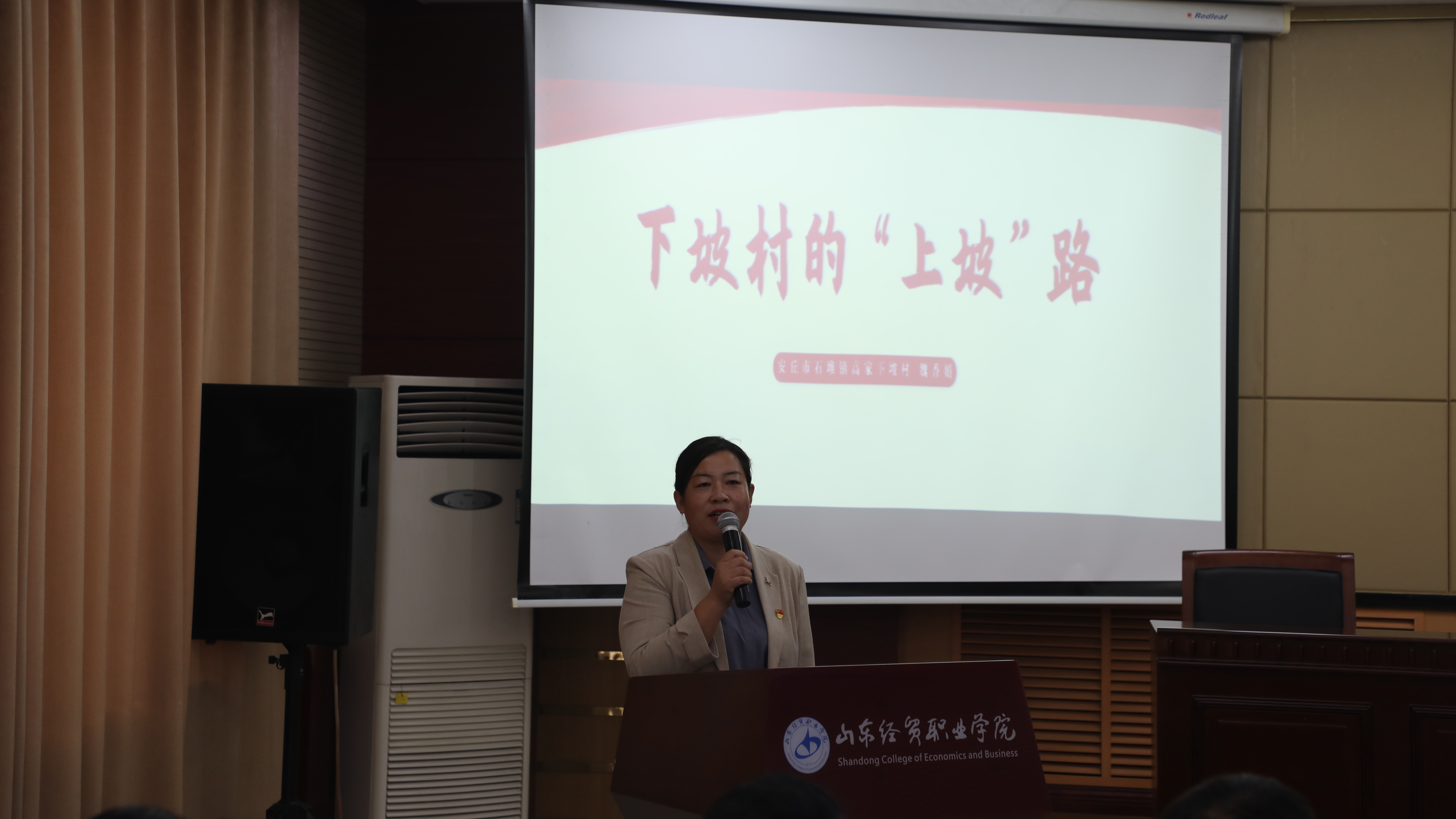 此次宣讲活动以“学思践悟新思想 潍心向党建新功”为主题,由市宣传文化服务中心副主任于新启带队,学院党委副书记王炳华到场致辞。活动由潍坊市王尽美革命事迹教学基地服务中心教师杨洋主持。