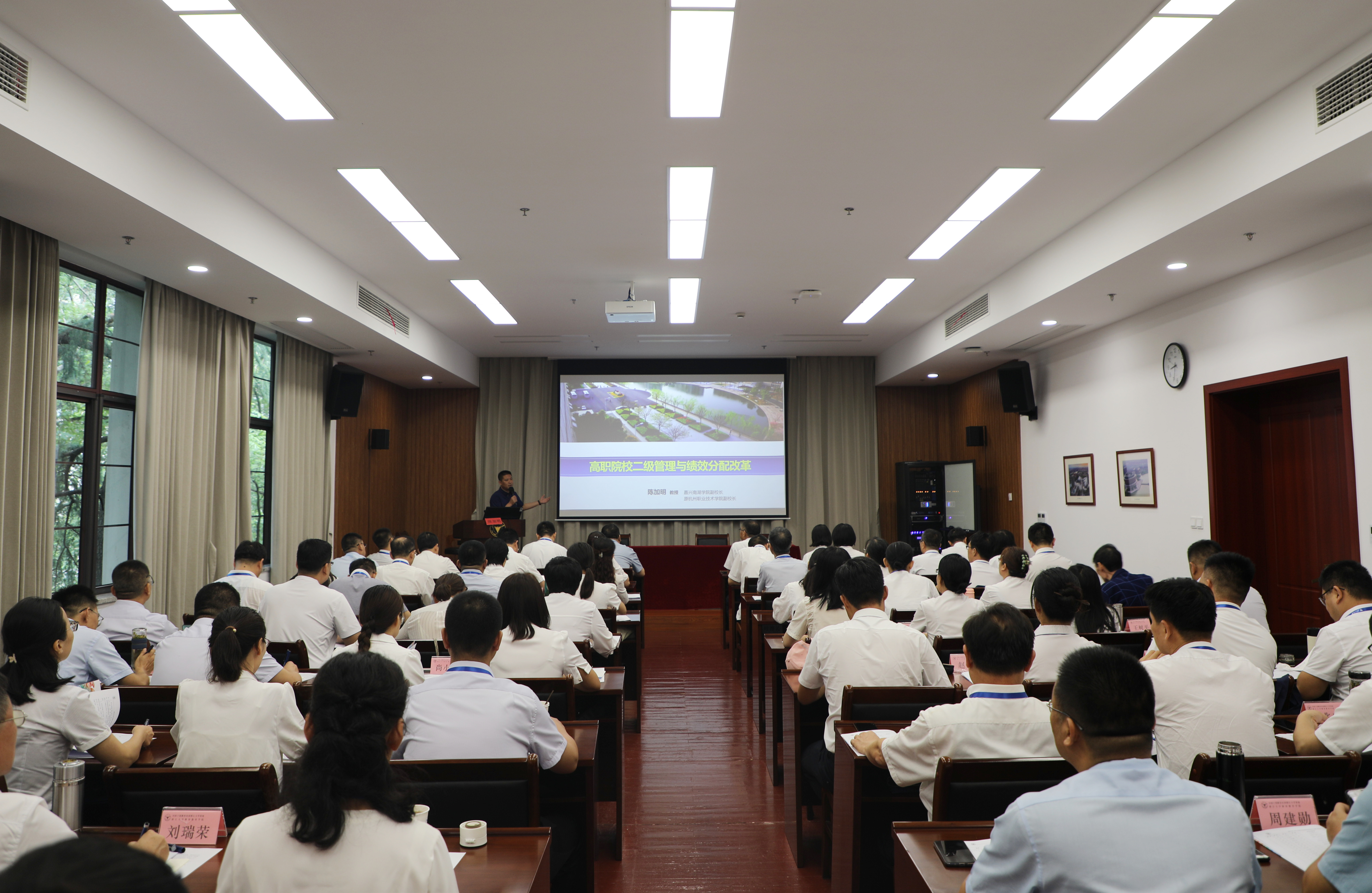 此次培训采取“理论授课+现场教学”方式进行,先后开展了《高职院校二级管理与绩效分配改革》《深化现代职业教育体系建设改革,高质量实施高职院校“双高”建设的思考》《高校突发事件处理与舆情应对》《职业院校核心竞争力与品牌建设》《怎样办一所高质量高水平高等职业院校》《新时代我国职业教育深化产教融合的若干思考》《高职院校中层管理与工作思路谋划》等专题教学。