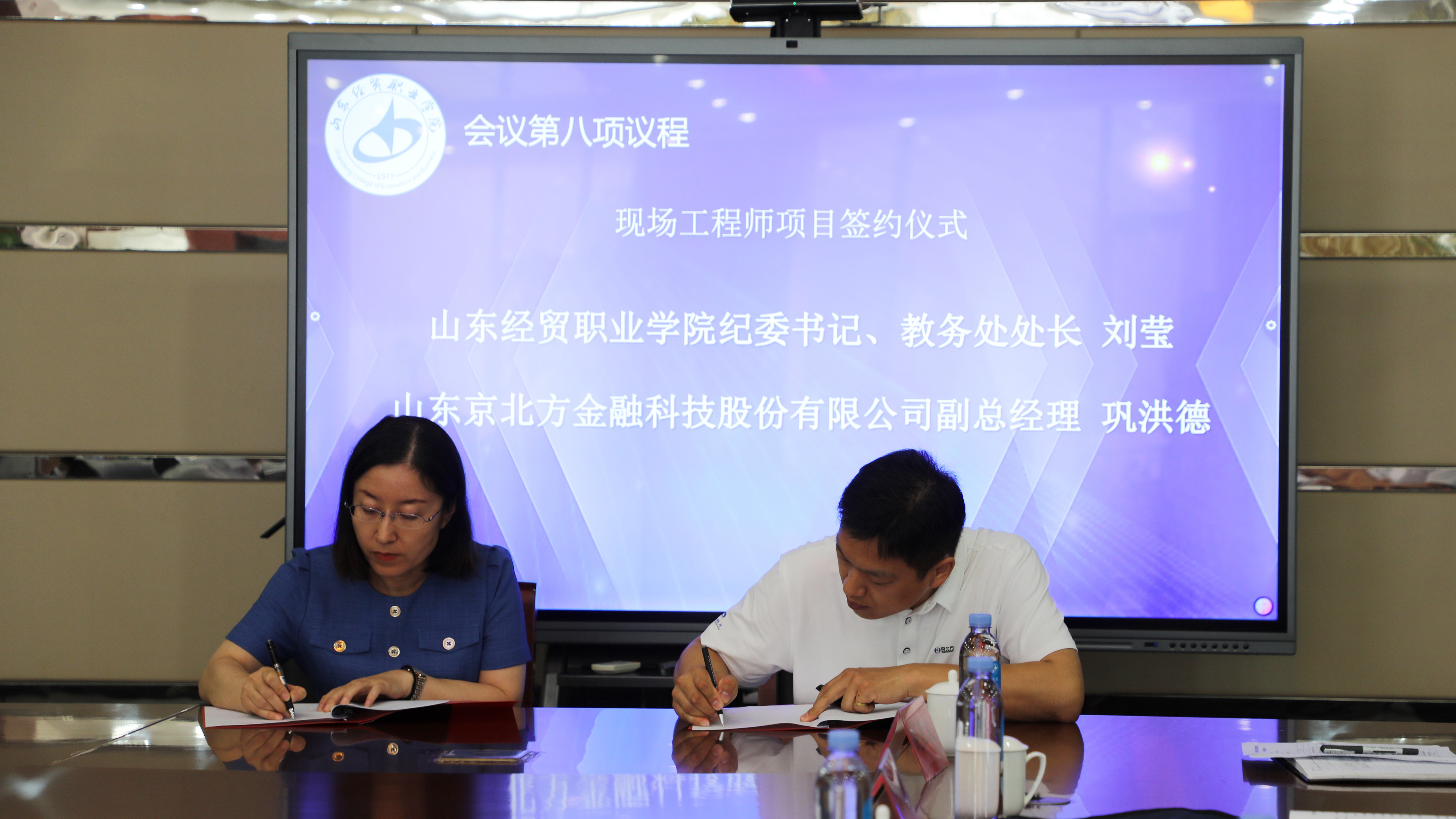 会上,学院与山东京北方金融科技有限公司签订了现场工程师培养项目协议,与兴业证券股份有限公司签订了校企合作协议。