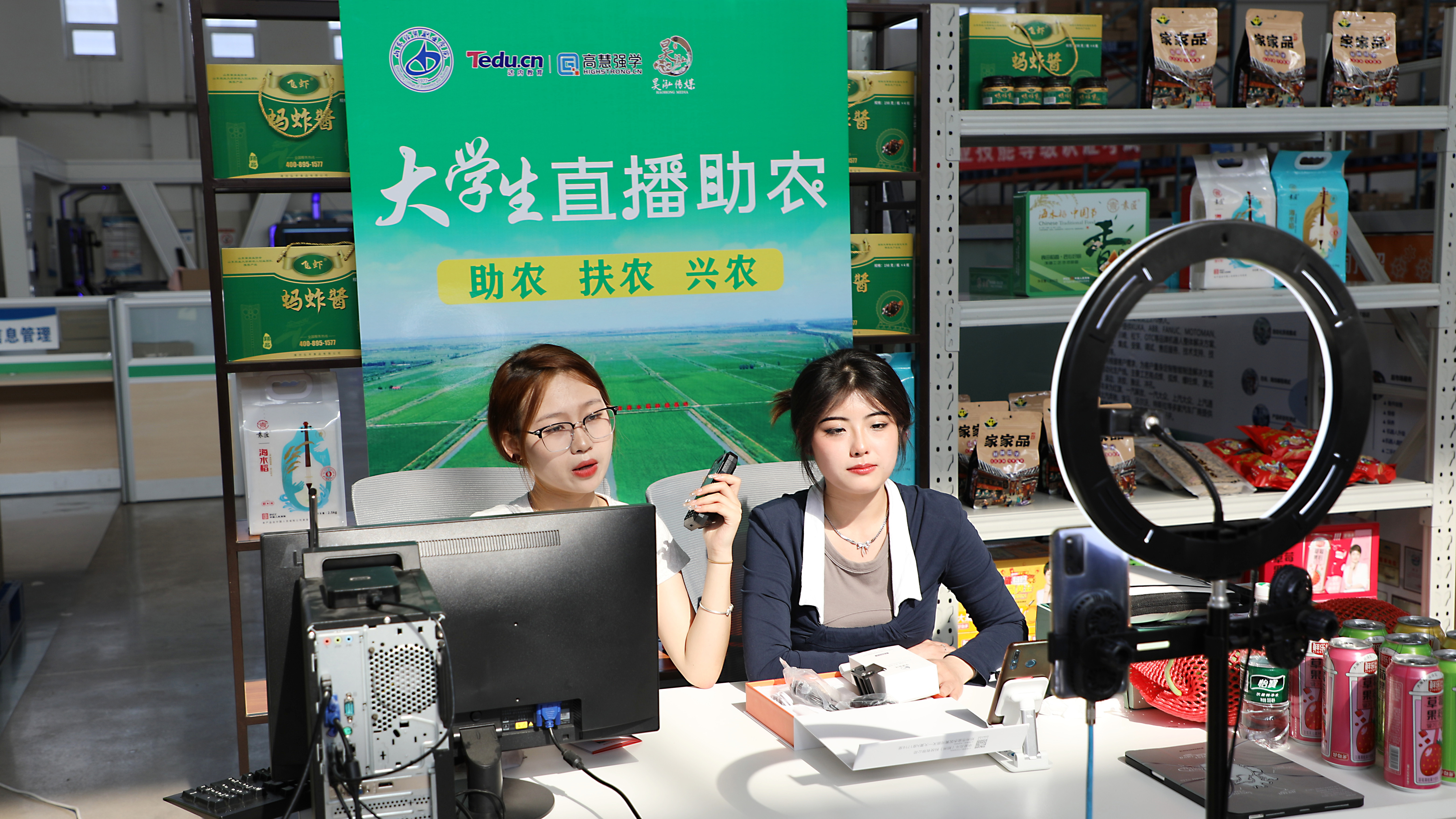 商务工程技术系通过电视连线的方式直观展示了网络电商直播实时画面,三位学生主播配合默契,“321,上链接”,来自坊子区黄旗堡的西红柿、来自寿光蔬菜基地的黄瓜通过学生主播的努力推介走出潍坊走向全国。