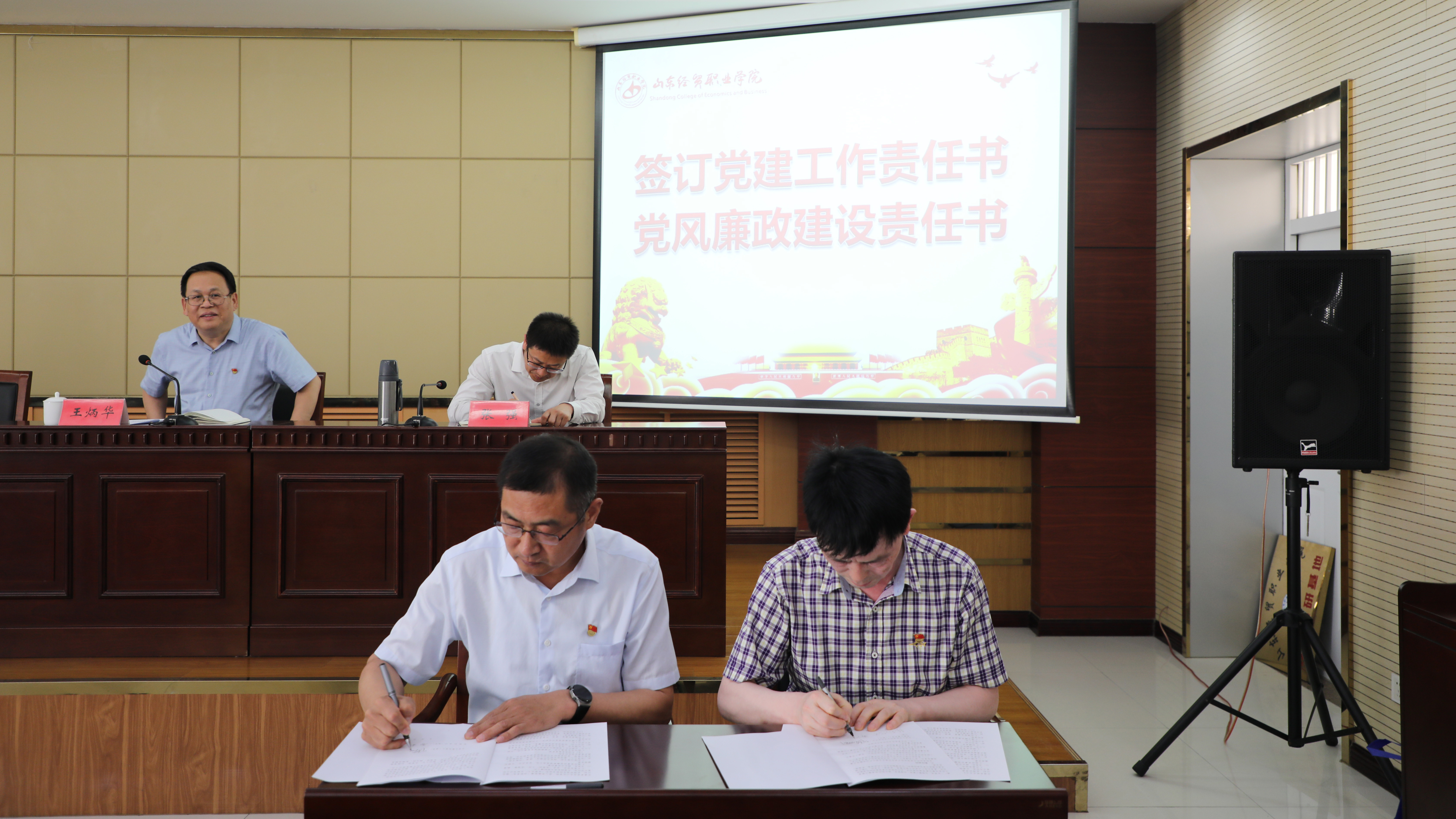 陈卫国与基层党组织代表会计系党总支、财政金融系党总支、后勤管理处党支部、资产管理处党支部签订《党建工作责任书》和《党风廉政建设责任书》。