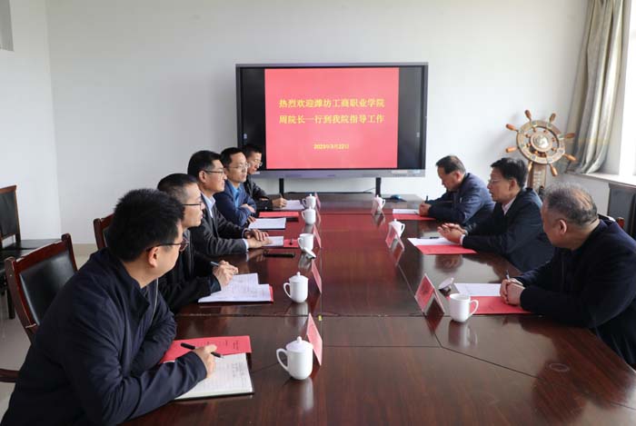 3月22日,潍坊工商职业学院副院长周平、招生就业处处长白汝信等一行4人来我院调研交流。学院党委副书记、院长陈卫国出席,招生就业处、学生工作处等相关负责人参加了交流。