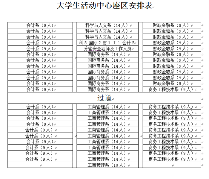1.参会人员于14:20前入场完毕,各系安全管理老师负责组织本系学生参会及签到,签到表复印件报保卫科一份。