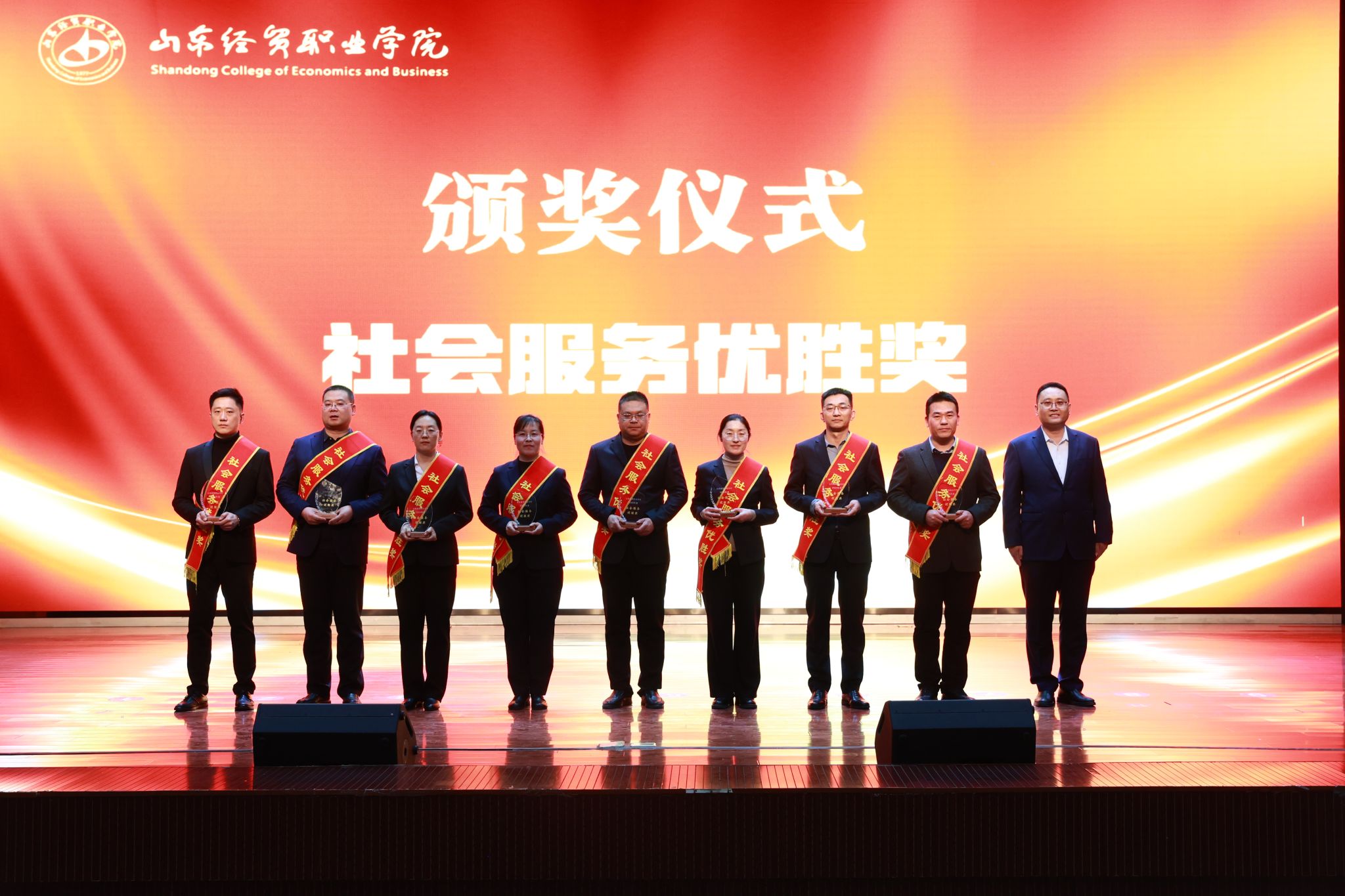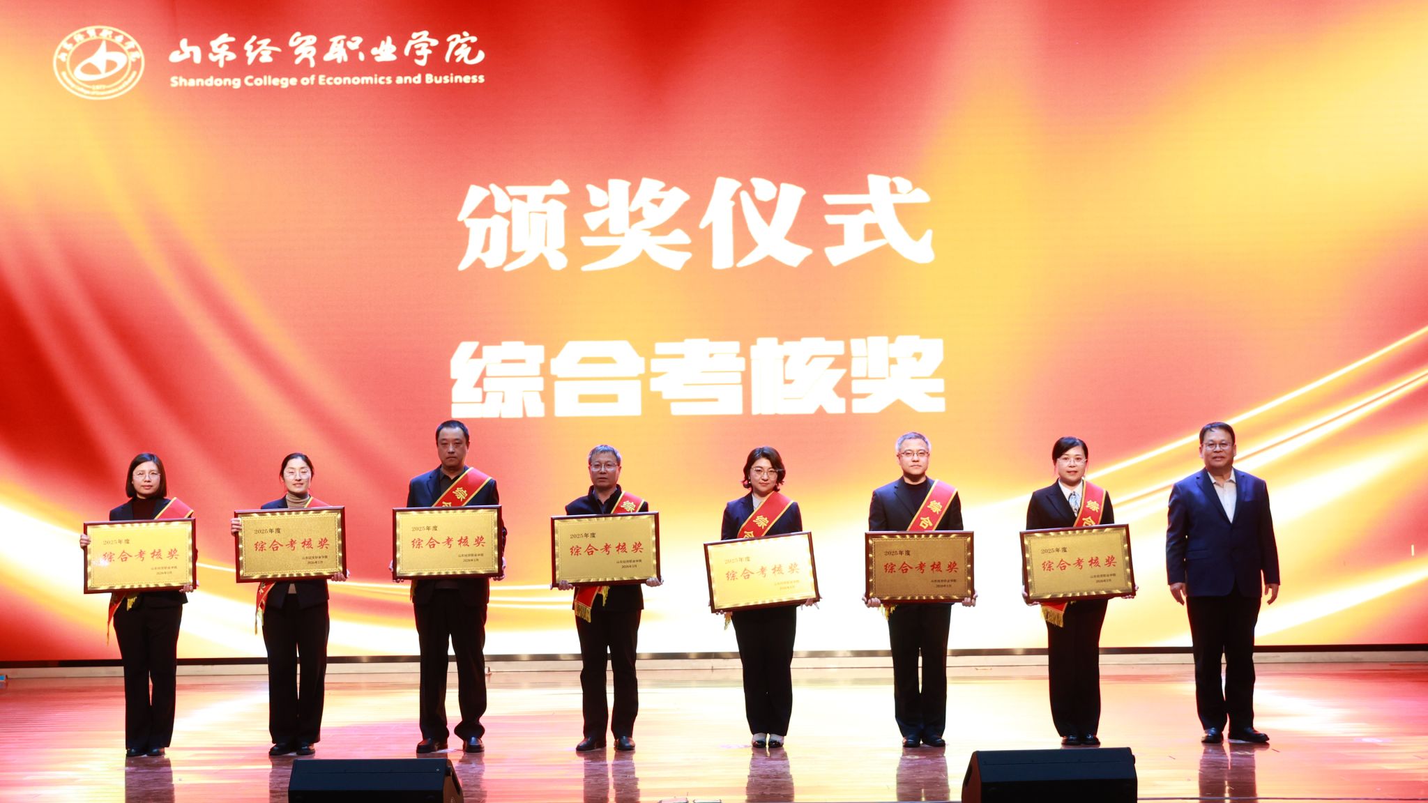 会议表彰了2025年度为学院高质量发展作出突出贡献的先进集体、团队和个人。学院领导为争先创优先锋奖、社会服务优胜奖、质量提升奖、综合考核奖和突出贡献奖的获奖单位及个人代表颁奖,充分肯定了他们的辛勤付出和卓越贡献。
