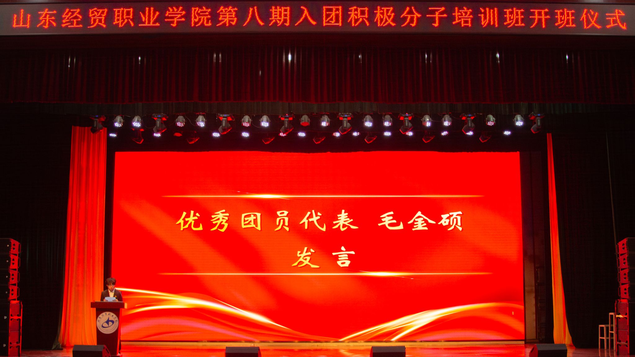 入团积极分子代表、工商管理系2025级电子商务3班李萧雨,优秀团员代表、院团委学生副书记、商务工程技术系2024级冷链物流技术与管理班团支部书记毛金硕先后发言。