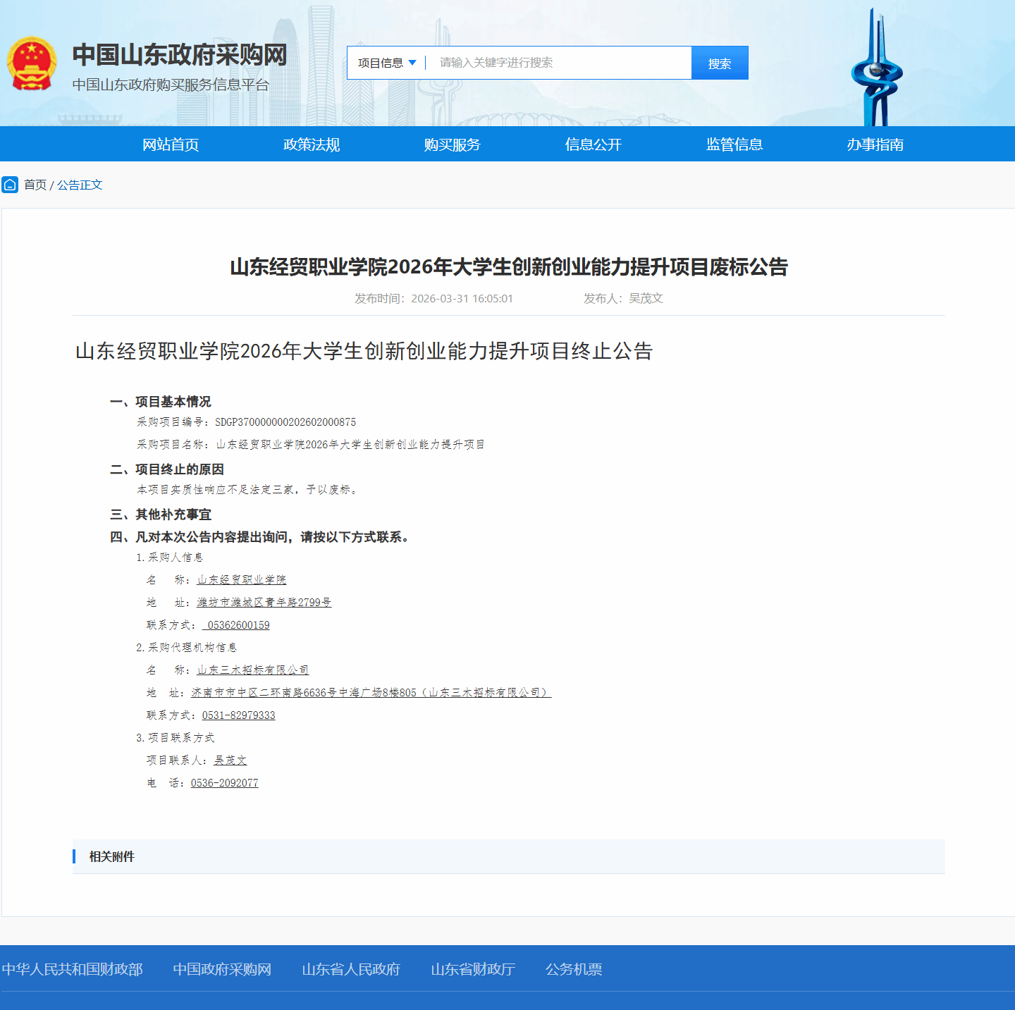 2026年大学生创新创业能力提升项目废标公告
