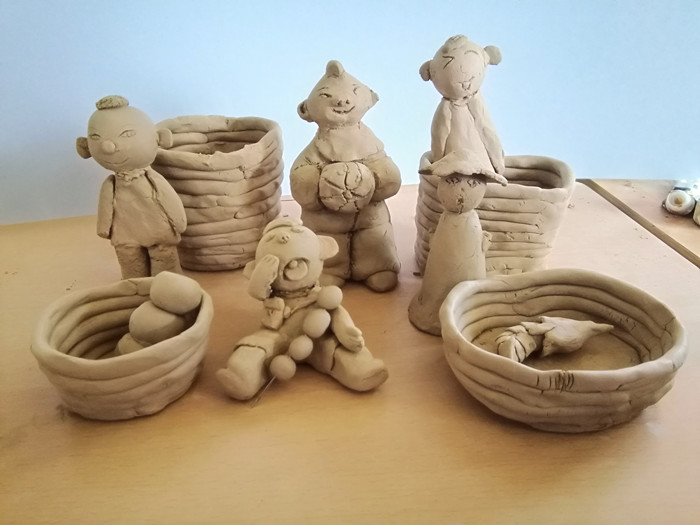 “玩泥巴”是同学们小时候的最爱,大学里开设这类手工课更能够让学生放下手机,进行手眼结合的活动,发挥学生动手能力和创造能力。课堂上同学们兴趣盎然,一个泥团,搓一搓、捏一捏,恣意地发挥想象,快乐地创作探索。老师加以点拨,泥团便在手中重获新生,一个个艺术品就此诞生了。泥巴变成“老人”“小孩”“农舍”……往往会有意想不到的惊喜,学生们超凡的想象力令人折服,创作出不少优秀作品。