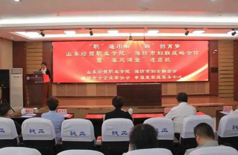 为深化校地合作,推动产教融合,5月23日,潍坊市妇联与山东经贸职业学院举办战略合作暨“雏凤课堂”进高校活动,山东经贸职业学院、潍坊市妇联、合作单位负责人以及学院师生代表等150人参加活动。