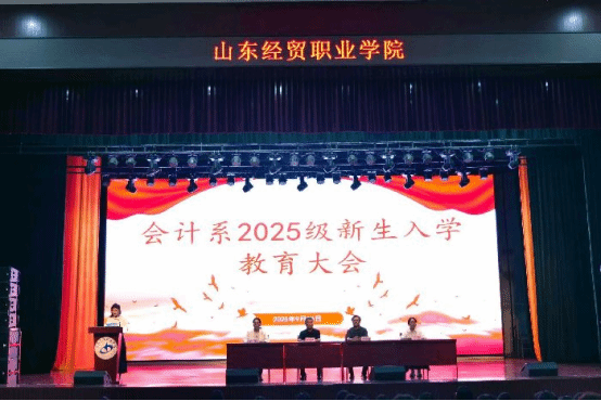 9月25日下午,会计系在学院礼堂举行2025级新生入学教育大会。会计系党总支书记李学建、副主任张建峰、秦敏,大数据与会计专业带头人闫菲参加会议。大会由王青青主持。