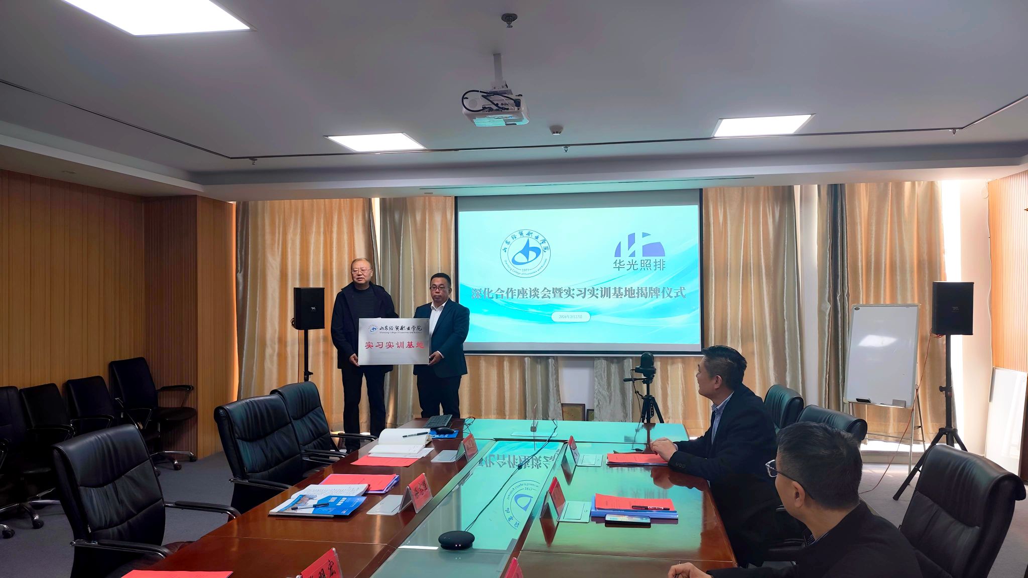 在潍坊北大青鸟华光照排有限公司,校企双方举行了校企合作仪式。仪式上,陈志勇为徐志强董事长颁发校外产业导师聘书;随后,陈志勇与徐志强董事长共同为山东经贸职业学院实习实训基地揭牌。双方还就联合成立协同创新中心、共建课程体系、联合开展技术研发等事宜深入商讨,达成多项合作共识。