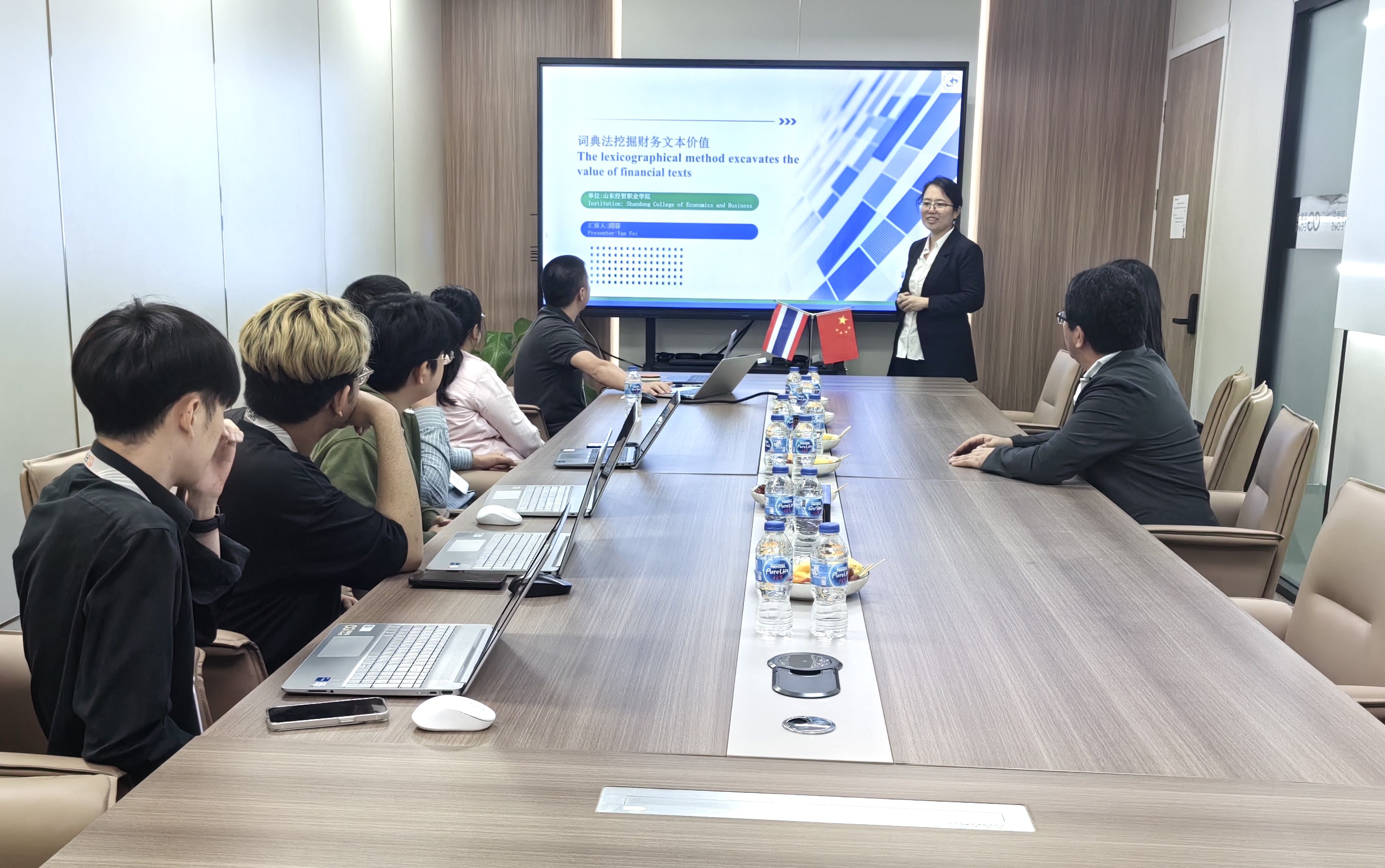 此次出访成果丰硕,学术交流与技能培训扎实推进。在泰国商会大学,闫菲老师为泰方60名师生开展了两场《Introduction to Big Data》专题讲座,系统阐释大数据概念、技术关联与基础应用;崔竹青博士则开讲《Corporate Internal Control》课程首课,为学院课程资源的国际化输出奠定了坚实基础。