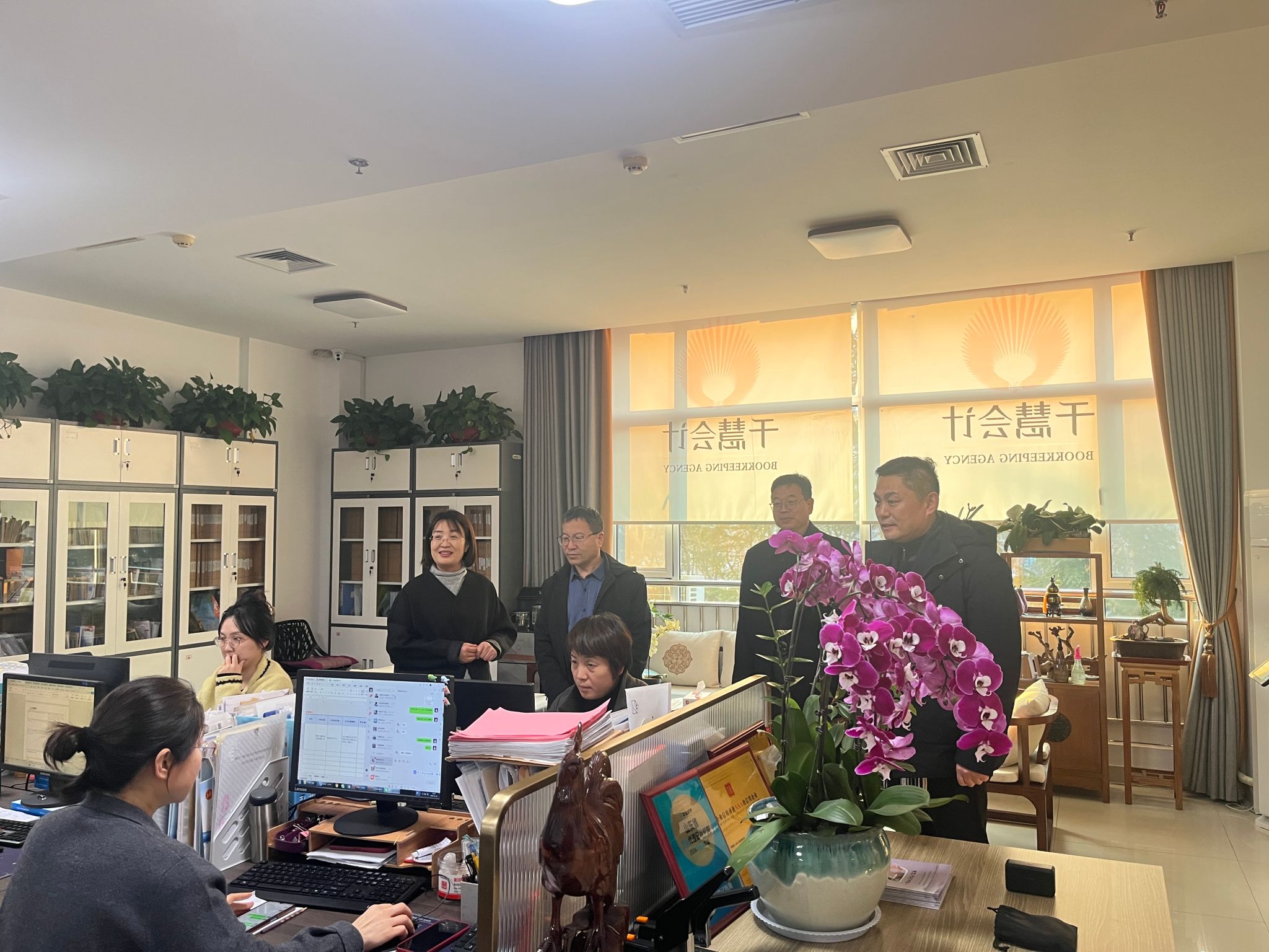 为深化产教融合育人机制,落实学院2026届毕业生就业工作启动会会议精神,精准对接财税行业发展需求,切实提升专业人才培养质量与学生就业竞争力,12月30日,会计系党总支书记李学建带队,赴千慧财税(山东)集团有限公司开展访企拓岗专项工作,与企业负责人深入交流并亲切看望在该公司工作的毕业校友代表,集团总经理吴艳霞等热情接待并全程参与活动。
