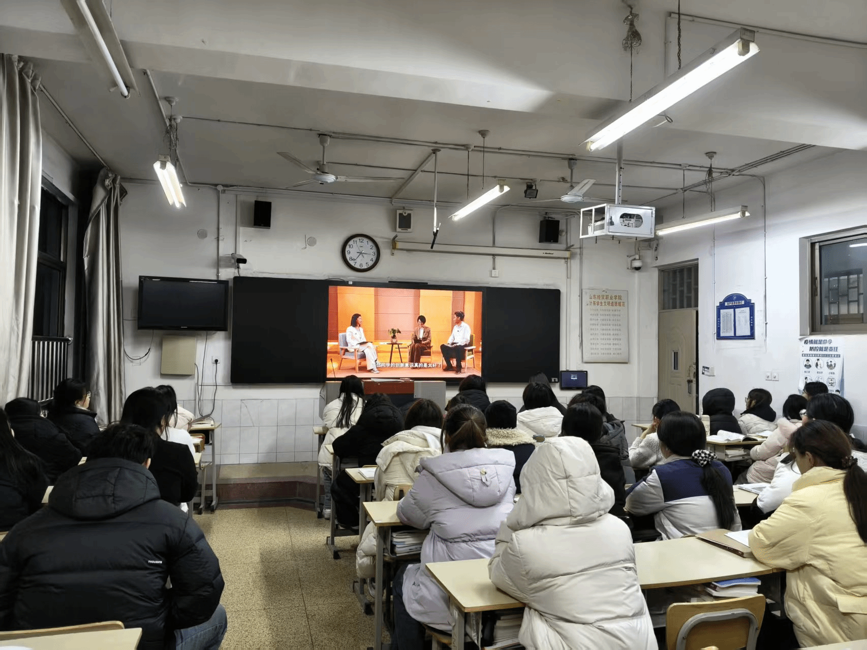 为进一步做好大学生的职业发展与就业指导工作,近日,会计系在1号教学楼组织学生观看了由山东省人力资源和社会保障厅与山东广播电视台联合主办的“才聚齐鲁 职面未来 | 新人职场”专题视频课程。本次活动以“职场软实力提升”为主题,聚焦大学生职业适应力与可持续发展能力的培养,旨在助力青年学子提升职业素养与综合能力。