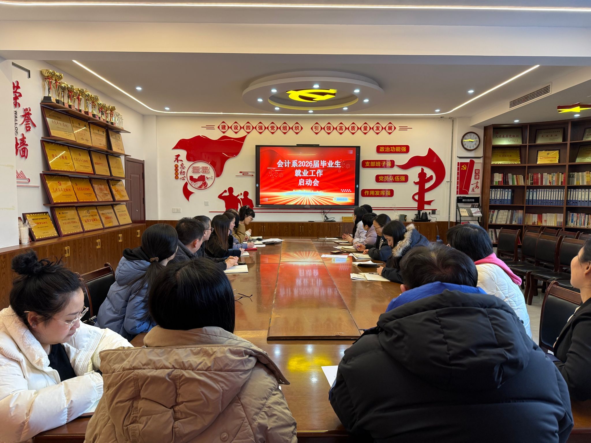 为深入贯彻落实学院 2026 届毕业生就业工作启动会部署要求,切实筑牢毕业生就业服务工作根基,全力推动毕业生高质量就业,1 月 12 日下午,会计系在 1 号教学楼 106 会议室召开 2026 届毕业生就业工作启动会。会议明确全员参与工作机制,细化工作方案,成立专项领导小组,为新一届毕业生就业工作按下 “启动键”。