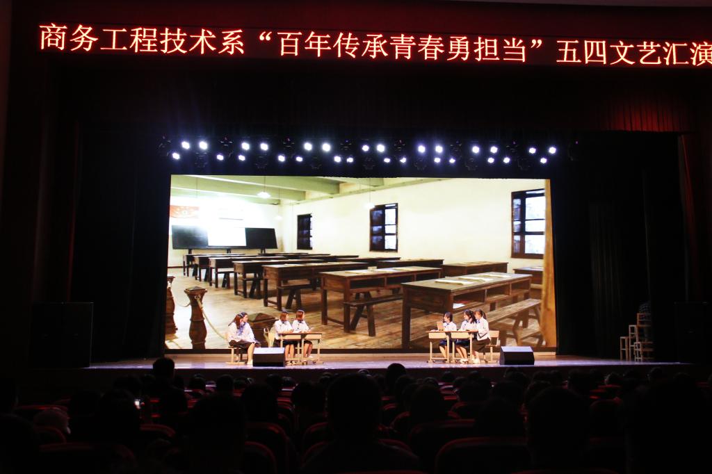 5月8日晚7点,商务工程技术系“百年传承,青春勇担当”五四晚会在大学生活动中心隆重举行,商务工程技术系主任高中玖、党总支书记郭启瑞,部分教师代表,全体辅导员及在校学生观看了晚会。