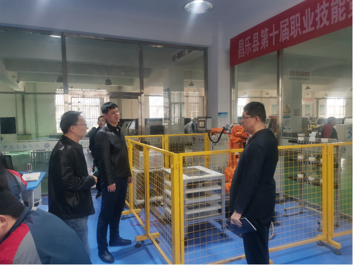 2025年3月19日下午,商务工程技术系副主任吴国华、张述敬、无人机应用技术专业教师徐伟赴昌乐技师学院开展专业建设调研。 昌乐技师学院智能制造系李晓康主任陪同考察了工业机器人生产线、自动化制造中心、新能源汽...