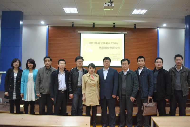 2013年4月25日,商学院电子商务专业在第一报告厅举办了“优秀网商”专题报告。中国团购在线总经理王松森、运营经理闫宁、潍坊市家具协会秘书长袁凤奎、潍坊小蜜蜂购物网运营总监王子超、商学院副院长方尧江、吴国华出...