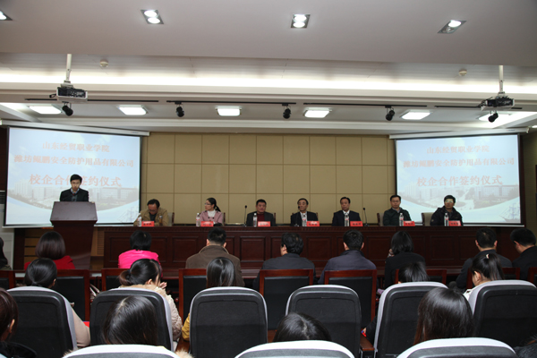 2013年12月3日下午,我院与潍坊鲲鹏安全防护用品有限公司校企合作签约仪式暨潍坊鲲鹏安全防护用品有限公司招聘宣讲会在学院第二报告厅举行。学院党委副书记高法贵出席活动并致辞,热烈祝贺我院电子商务专业校企合作又...