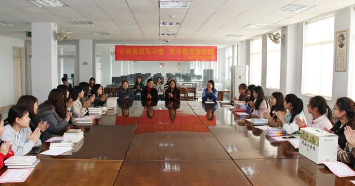 11月13日,两位评委,图书馆尹修华、王凯、王国丽共同在颁奖典礼上为获奖选手颁发了证书及奖品。