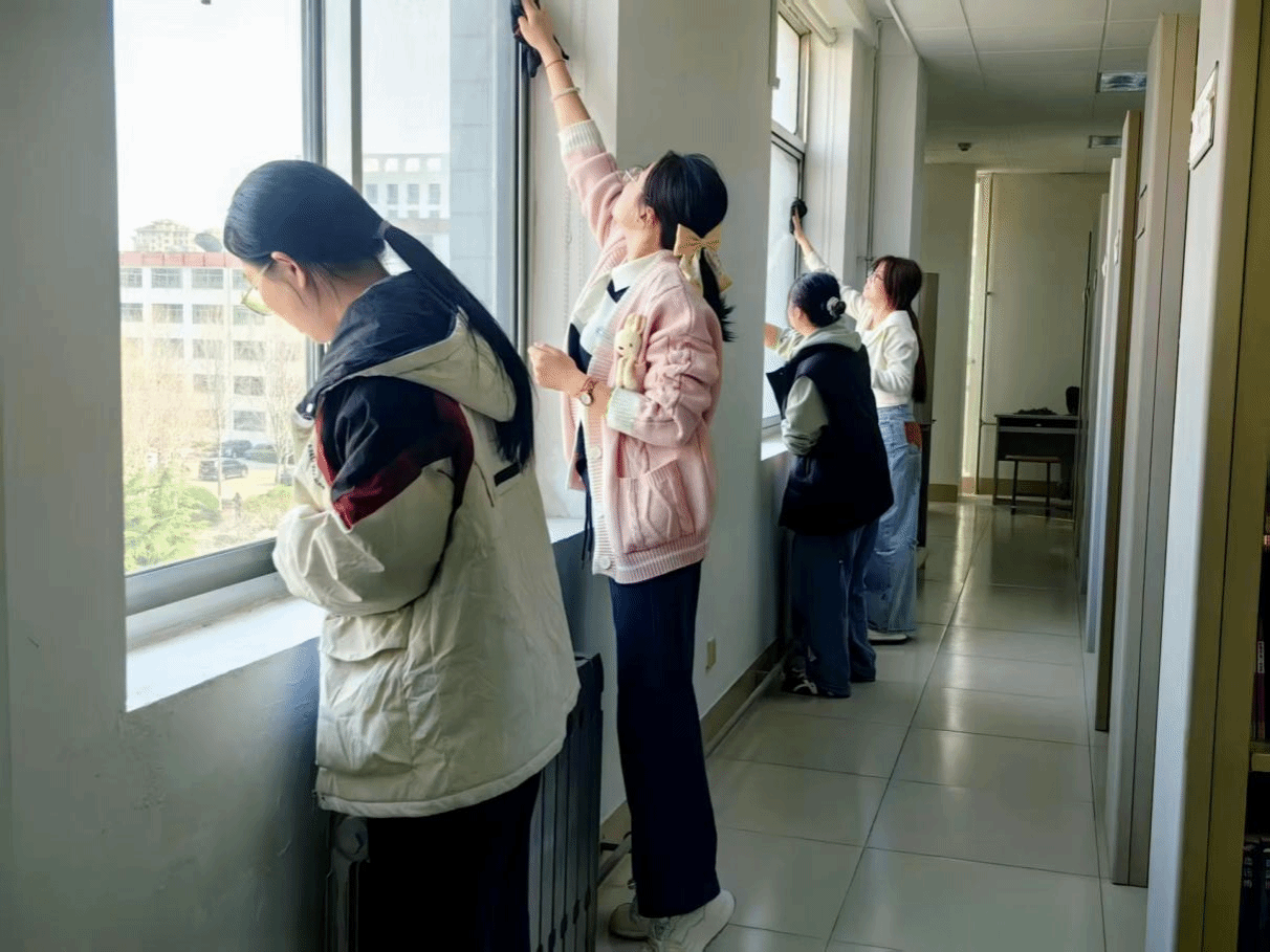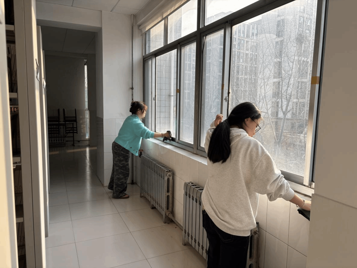 本次活动于学雷锋月期间,在我院图书馆全面开展,服务时段为每周一至周五下午,覆盖二楼至六楼阅览室、书库、自修室及公共通道等核心区域。活动伊始,图书馆管理员为志愿者开展岗前培训,详细讲解清洁操作规范,重点强调“轻擦轻扫、爱护书籍”的原则,明确各区域清洁标准与注意事项,为志愿服务的有序开展筑牢基础。并且各小组组长全程监督作业质量,在16:30-17:00开展二次巡检,及时清理读者使用后产生的临时杂物,持续保障阅读环境的整洁有序,用双手为全校师生打造了舒适、温馨的“无尘阅读空间”。