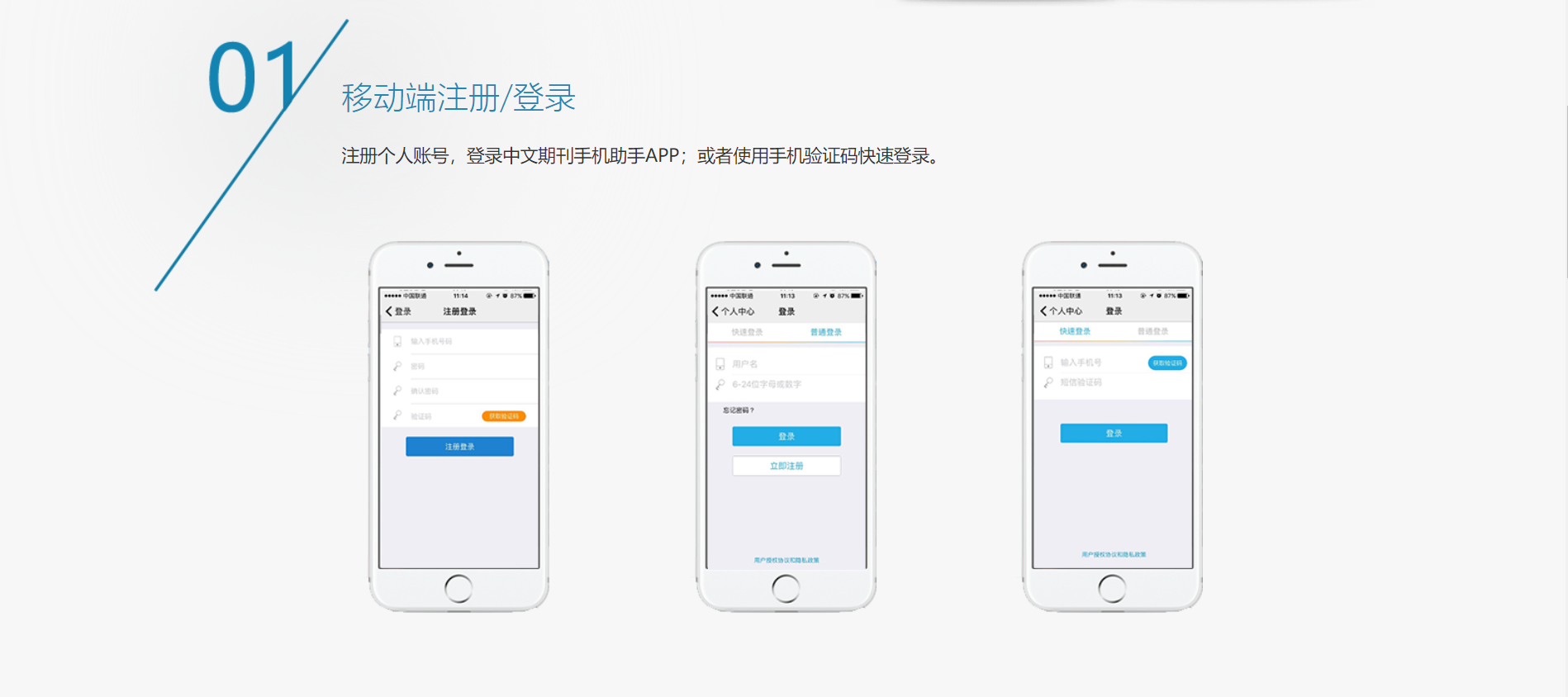 注册个人账号,登录中文期刊手机助手APP;或者使用手机验证码快速登录