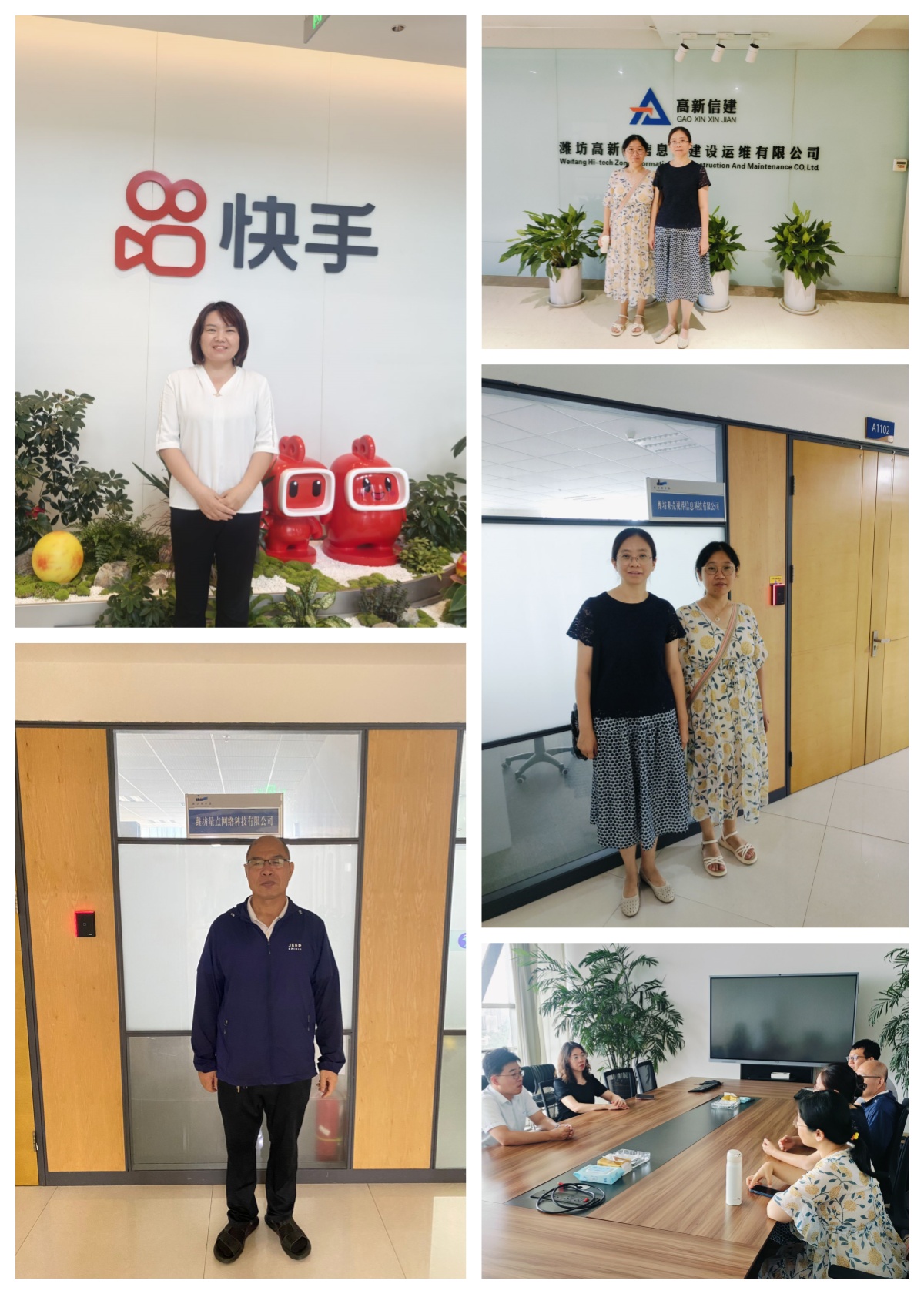 为深化产教融合,精准对接行业需求,提升技能人才培养质量,7月16日,信息技术系主任王海霞及计算机专业教师,先后赴北京快手科技有限公司、潍坊量点网络科技有限公司、潍坊果壳视界信息科技有限公司、潍坊高新区信息化建设运维有限公司、山东桥通天下网络科技有限公司等企业开展访企拓岗暨专业调研活动。此次活动聚焦计算机应用技术、计算机网络技术、动漫制作技术、智能互联网络技术等专业建设,旨在探索校企协同育人新模式,助力学生高质量就业。