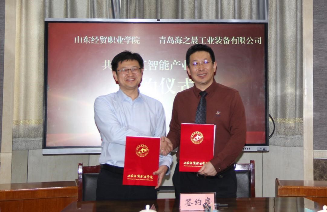 1月28日上午,山东经贸职业学院与青岛海之晨工业装备有限公司合作共建“人工智能产业学院”签约暨揭牌仪式在学院隆重举行。山东经贸职业学院副院长张强、信息技术系主任王海霞、交流合作处副处长李君,青岛海之晨工业装备有限公司总经理陈栋、马来西亚分公司总经理刘晓芳、副总经理刘桂欣、销售总监秦向阳等校企双方代表出席仪式。
